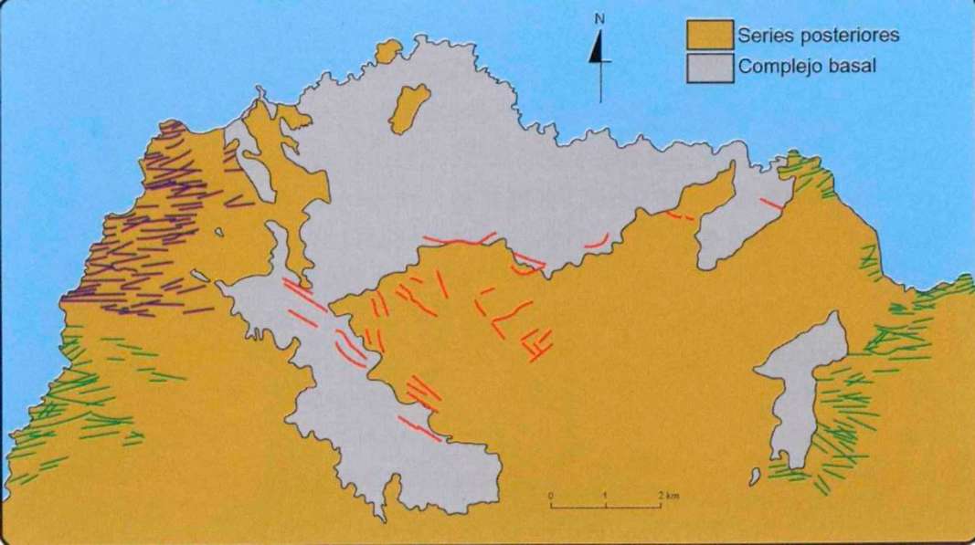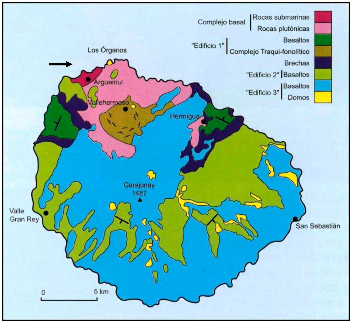 complejo basal y los edificios en escudo. Como en Fuerteventura, el complejo basal consta de rocas