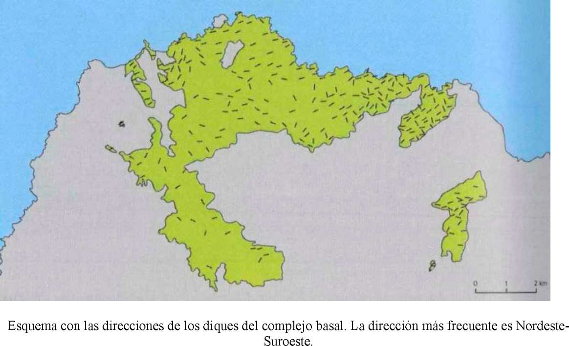 submarinas (lavas y sedimentos), rocas plutónicas, y un enjambre de diques. Separada del complejo por una