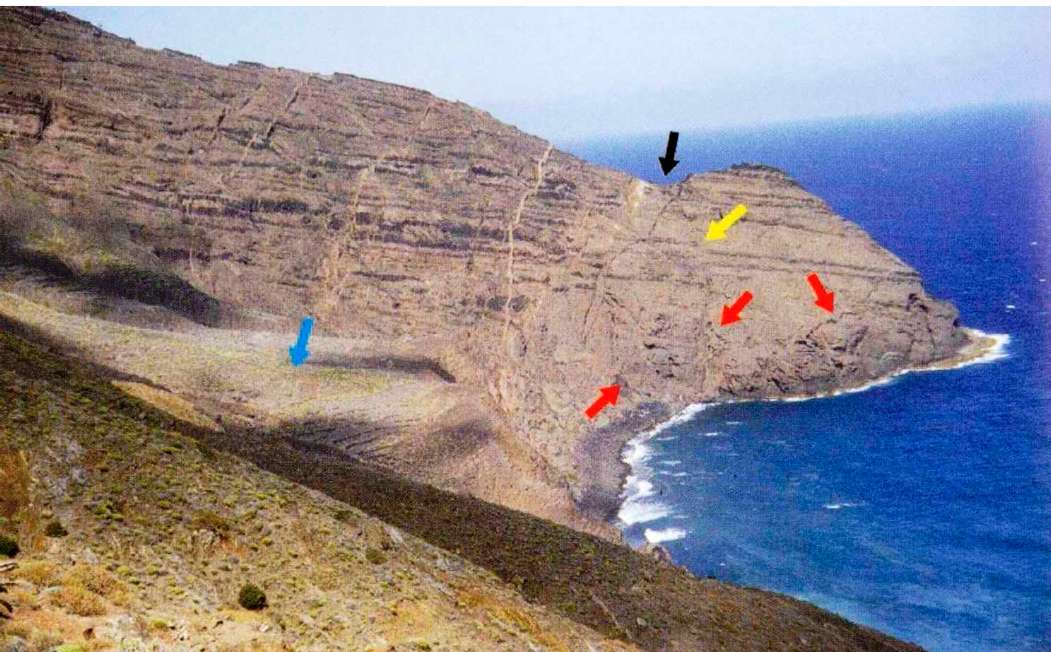 gomeras terminan en acantilados, en cuya génesis sin duda han jugado un papel clave los desplomes a favor de