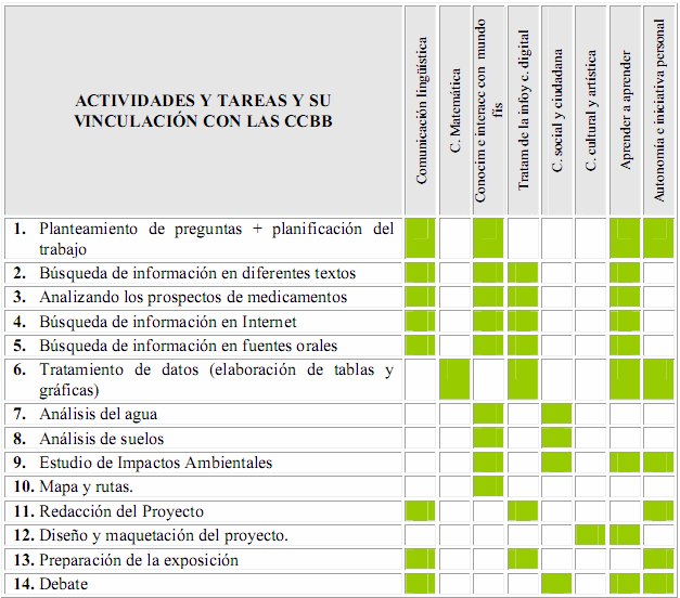 Dado que se trata de evaluar CCBB, las tareas se han