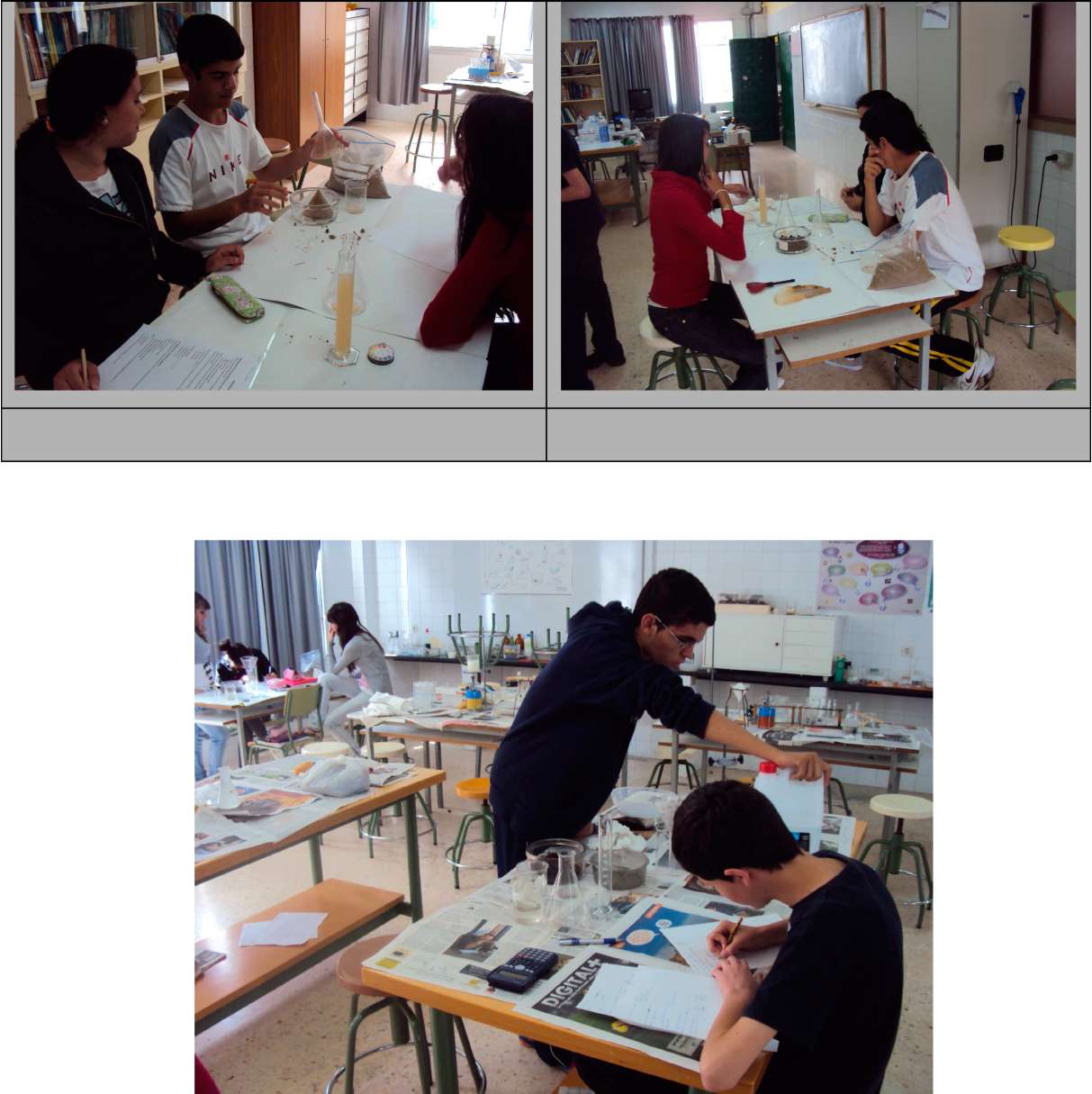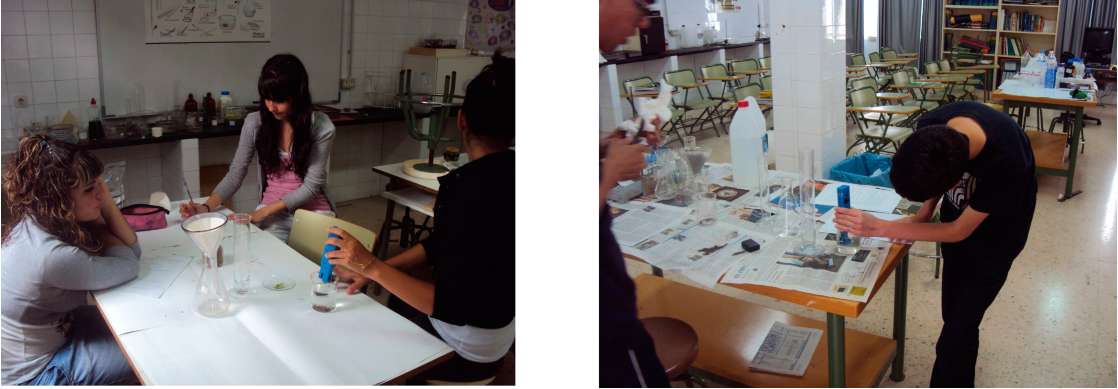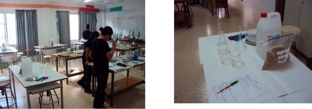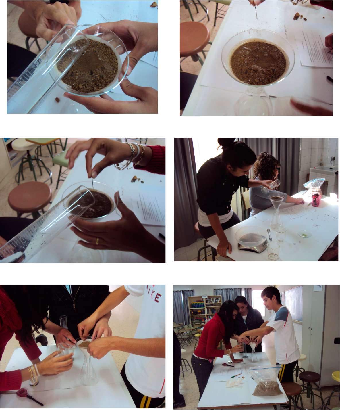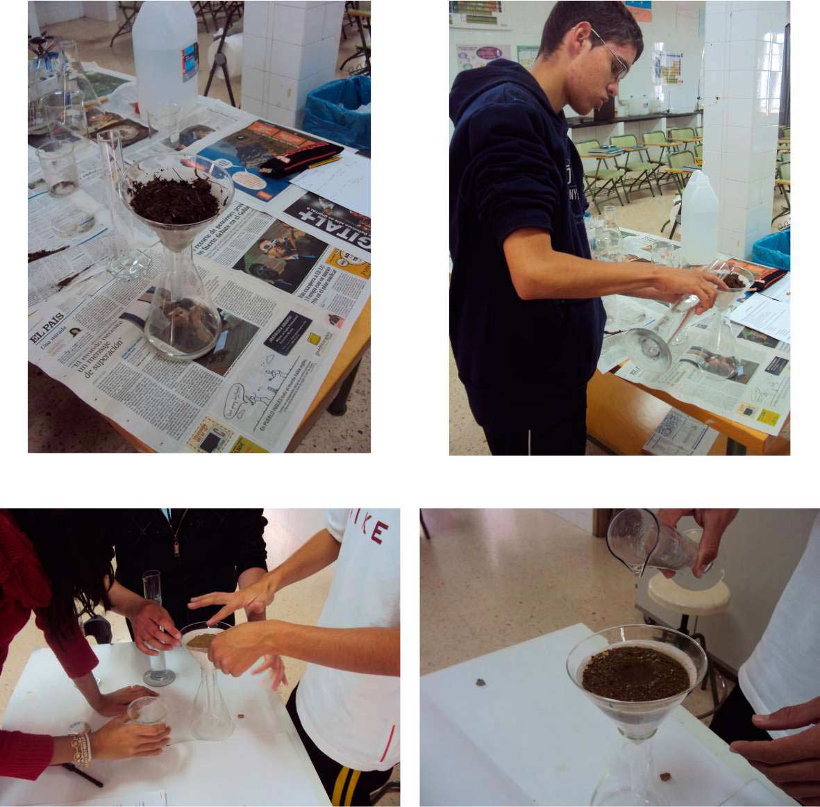 Colocamos cada muestra en un bote perforado por el fondo, y le añadimos agua