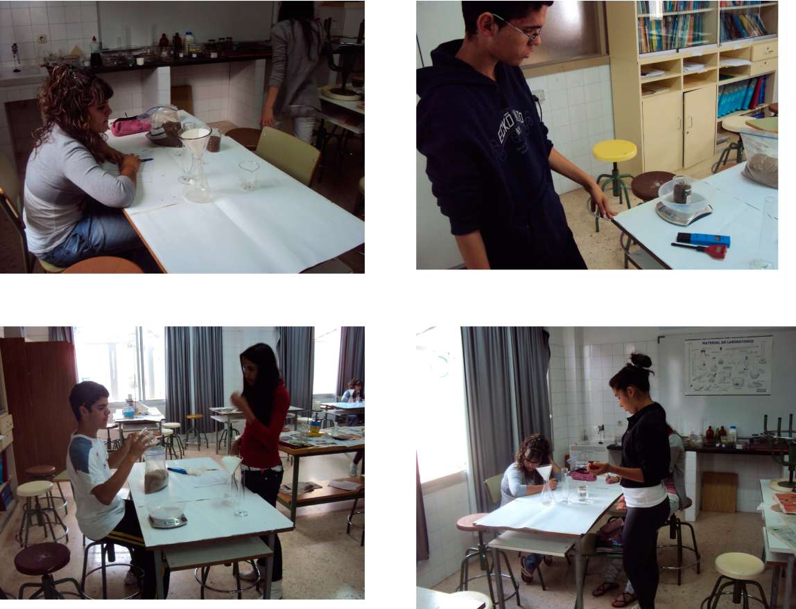 las Brujas). Pesamos un volumen determinado de cada uno de las muestras de suelo. Calculamos su