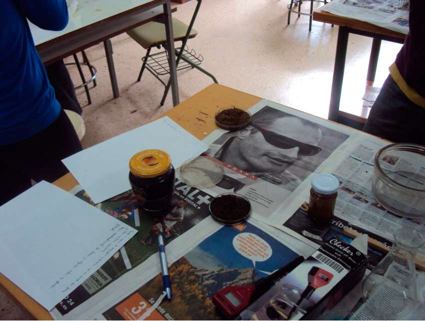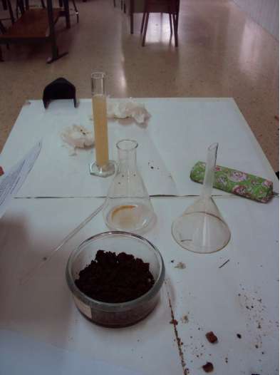 Coger un poco de tierra, echarla en un vaso con agua destilada, remover bien y