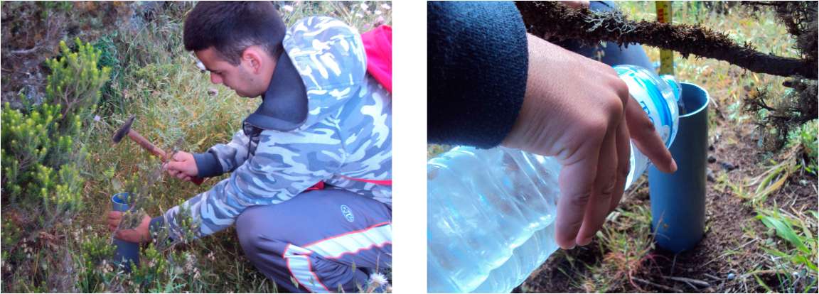 Coloca un tubo (sin su base) en el suelo y observa la rapidez con que el suelo
