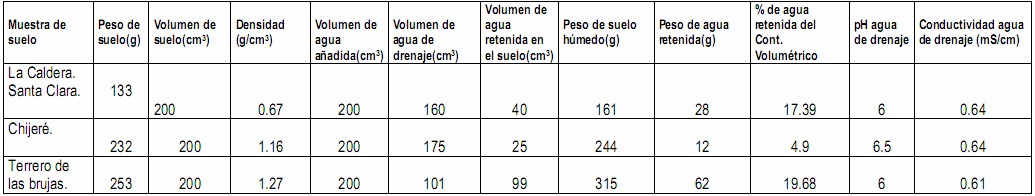 TABLA DE RESULTADOS. ANÁLISIS DE SUELOS: CHIJERÉ