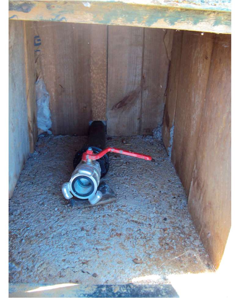 Boca de riego instalada para los cultivos. Nunca ha llegado a utilizarse