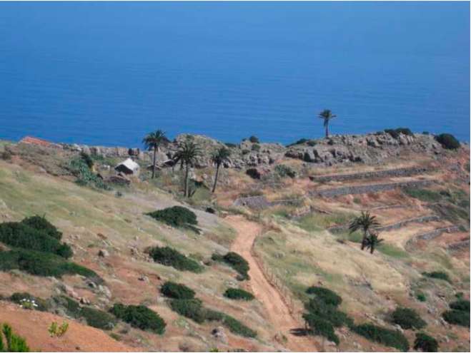 palmera canaria, que permanece solitaria, erguida en el risco, fue empleada como punto