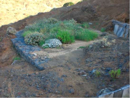 La vegetación coloniza los suelos retenidos por la albarrada.