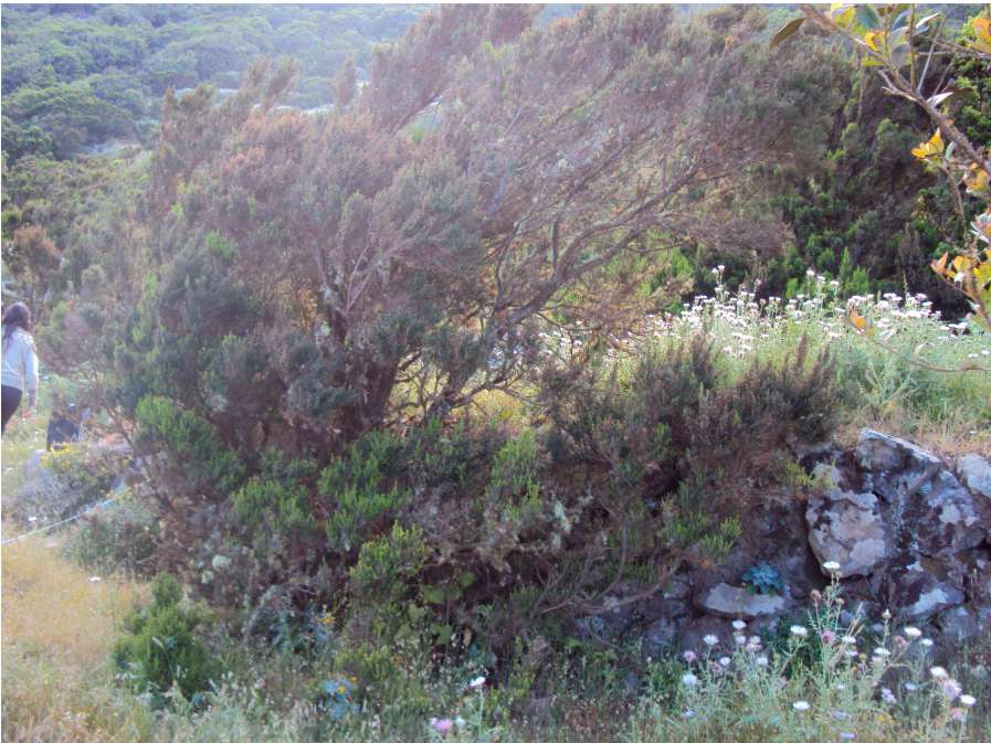 distintos tipos de flora: granadillo, brezo... Su piso bioclimatico es Monteverde de cresta. Realizamos una